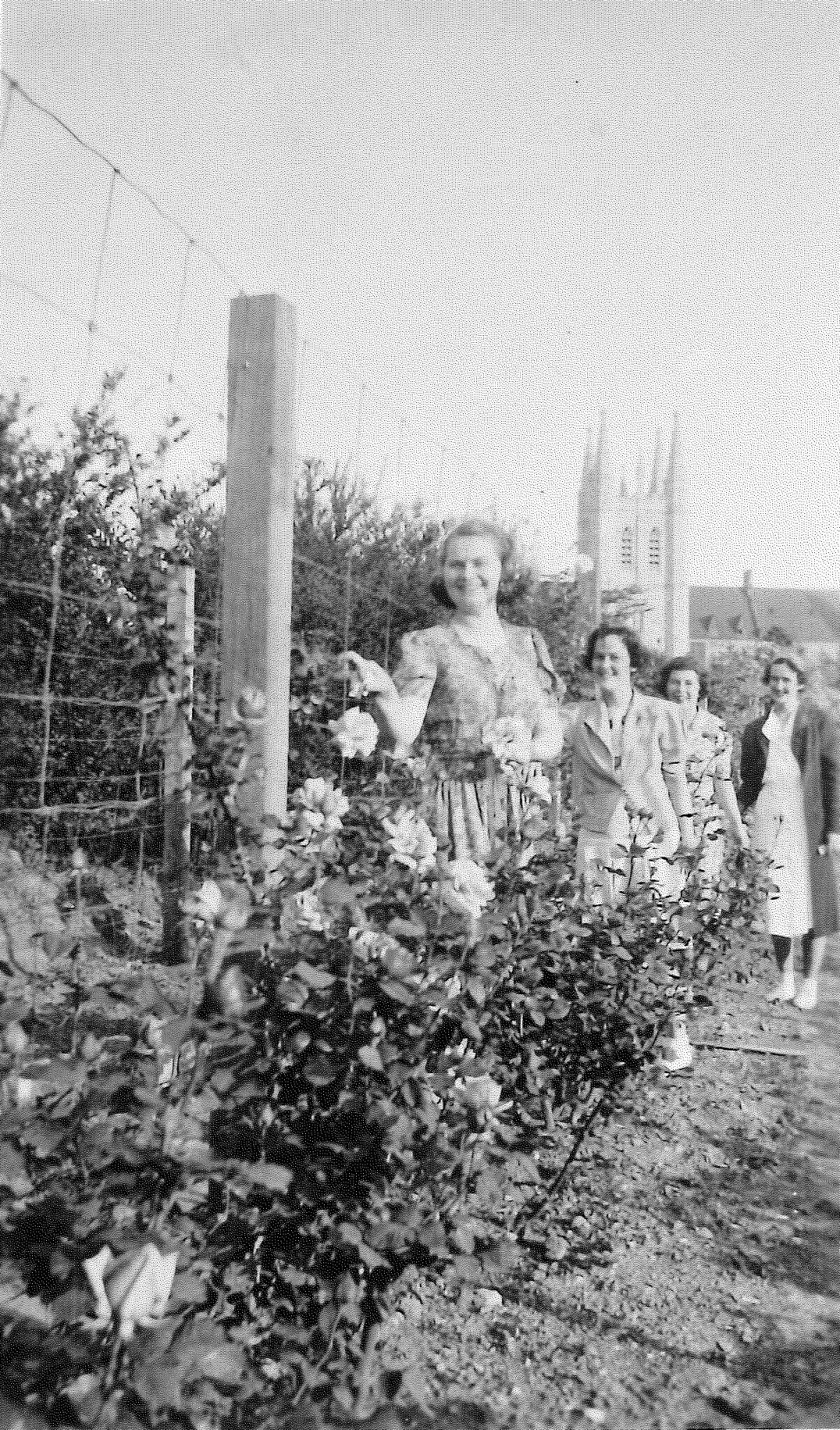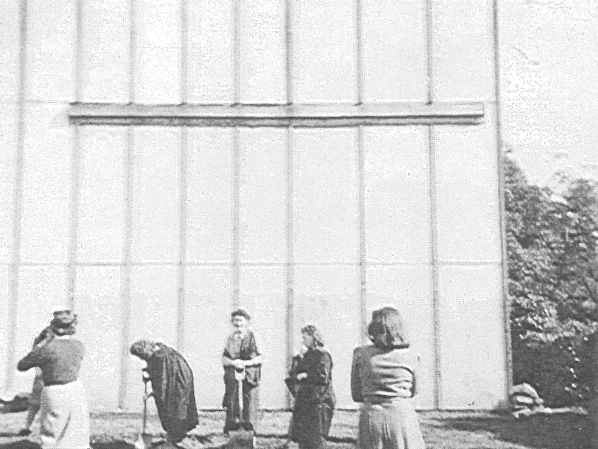Some of the Land Army in the Victory vegetable garden, NE corner of quad c1940