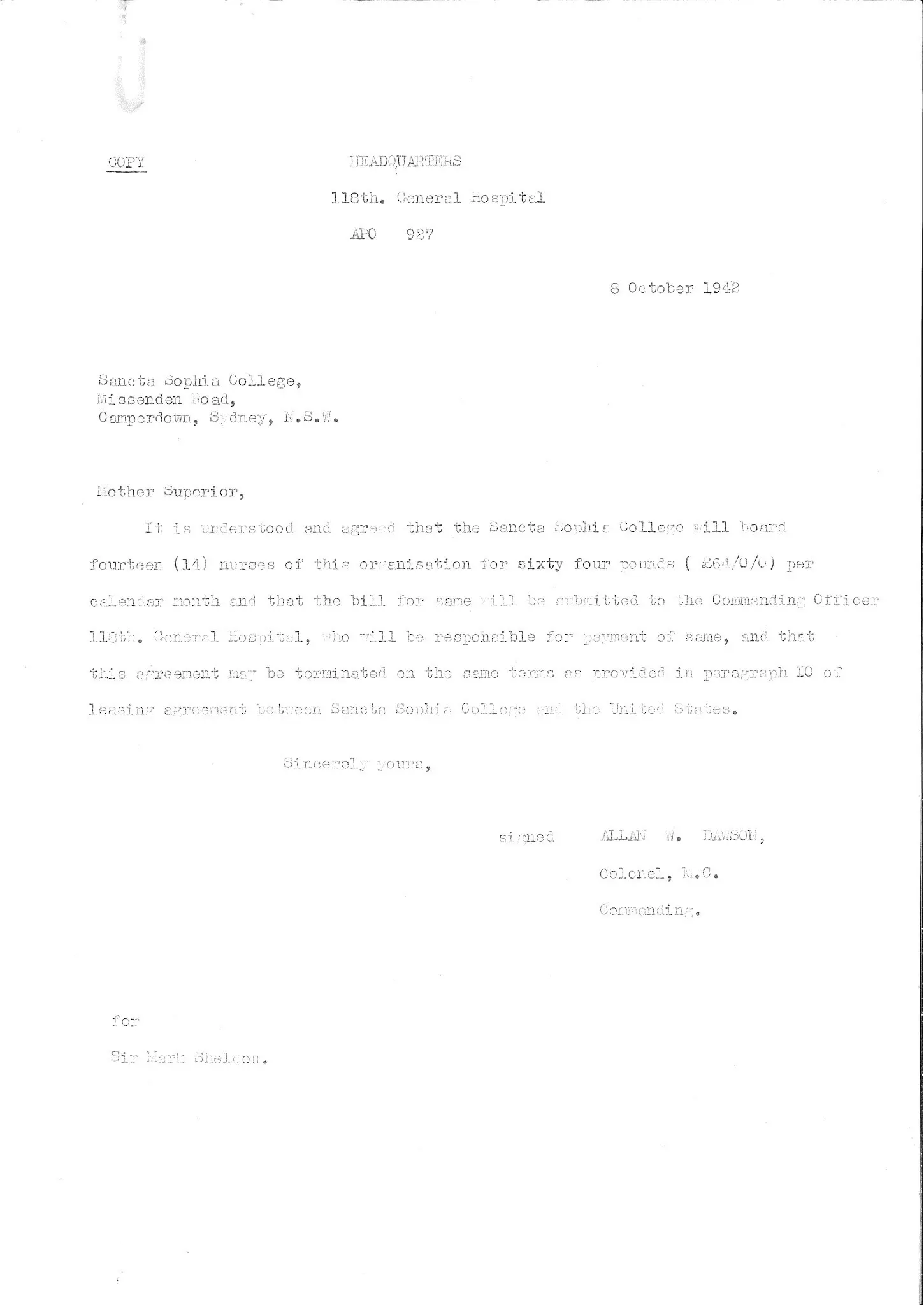 - Sancta Sophia College accommodated 25 nurses from the US Army Medical Corps, together with Red Cross workers, a dietician and physiotherapist from August 1942 until February 1943.