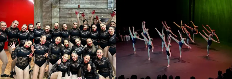 Left: The jazz team fresh off the stage after their powerful performance of ‘Bloodlust’. Right: The contemporary team performing their winning dance, ‘Maybe’.