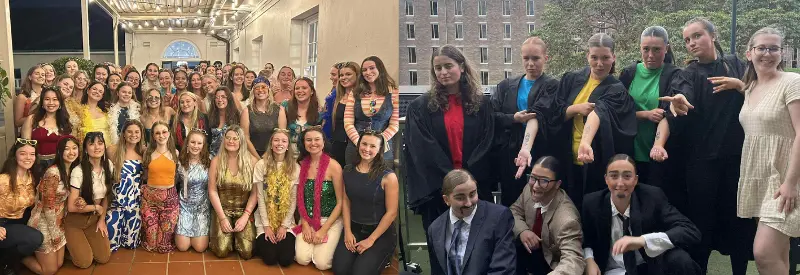 Left: Choir members shining in their ‘Dancing Queen’ costumes. Right: Our two Drama teams are ready to take the stage.