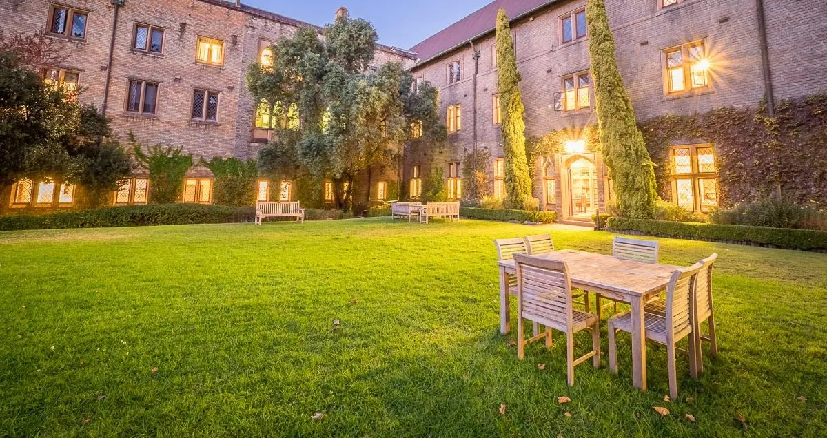 A cherished space for all Sancta students and staff past and present, The Quadrangle is a large rectangular garden space in the centre of the main building. It offers tranquillity, nature, and simplicity and has been used for large outdoor functions such as open-air cinemas, weddings, cocktail parties and summer banquets. Best availability is July, December-February.